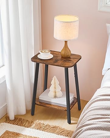 Folding C-Shaped End Table, Side Table for Couch, TV Tray Table for Small Spaces, Small Couch Side Table That Slide Under Sofa Bed, Living Room, Bedroom, Bedside, Rustic Brown ETHR4101