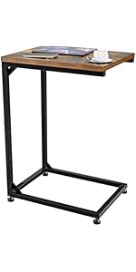 Simple Trending C Shaped End Table, Folding TV Tray Couch Side Table for Sofa on Wheels, Black