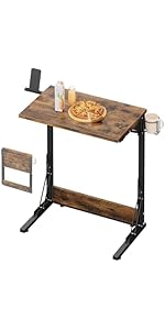 Tatub 24" Folding C Shaped End Table, Small Tempered Glass Side Table for Couch or Bed, Foldable TV Tray Laptop Desk with Gold Metal Frame